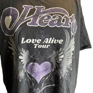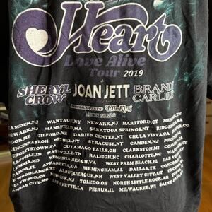 Heart Love Alive Tour 2019 Band Tee, Sheryl Crow, Joan Jett, Brandi Carlile, XL. Rock out in this iconic concert tee featuring the legendary lineup - Heart, Sheryl Crow, Joan Jett, Brandi Carlile and Elle King. Features the winged Heart graphic and full tour city list on the back. Soft cotton with a vintage style fade gives this shirt that perfectly worn concert tee feel. Excellent condition.