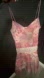 Very light floral fabric with spaghetti straps and lace embellishment. A-line with full skirt and hidden side zipper. Fully lined .