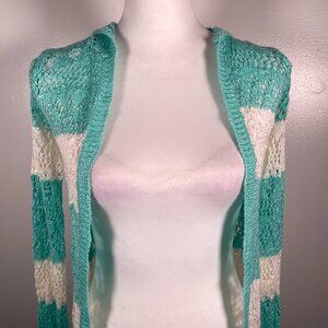 Heart N Crush Mint Green Ivory Hooded Open Weave 3/4 Sleeve Cardigan Sweater S