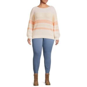 Heart N' Crush Women's Plus Size Boatneck Colorblocked Cozy Sweater