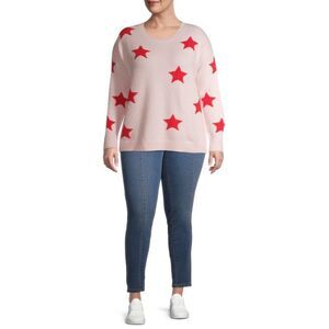 Heart N' Crush Women's Plus Size Star Print Crewneck Pullover Sweater