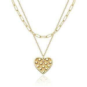 Heart Necklace Pendant Handmade 18k Gold Plated Dainty Gold Layering Long Women