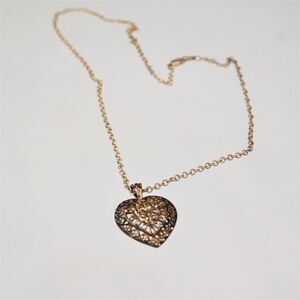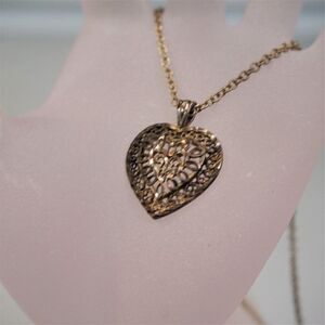 Silver Color Pendant With Chain . Love Friendship . 15"Long Chain . 0.75" x 0.75" Heart . Pre-owned.