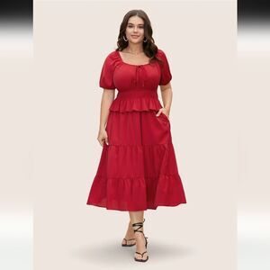 Heart Neckline Bowknot Ruffle Trim Midi Dress Sz 26 /4x