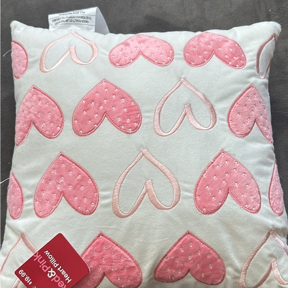 Charming pillow with pink heart designs. Ideal for adding warmth to any space.