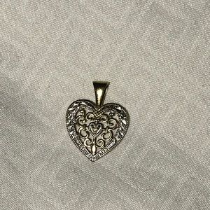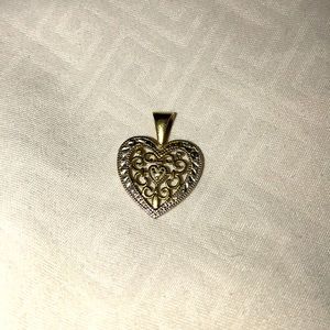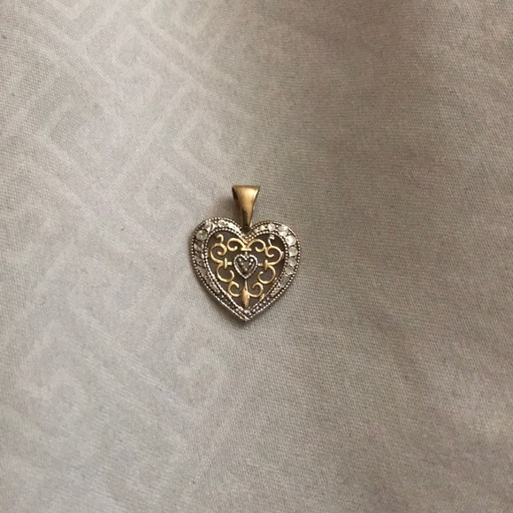 Unmarked Heart pendant. Silver and gold coloring with crystal in center.