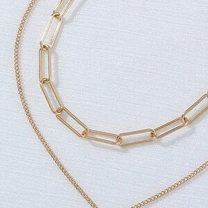 The cable chain necklace adds a modern and sleek element, while the paperclip chain necklace brings a touch of edginess to your style. Each necklace is brand new and in perfect condition, making it a great addition to your jewelry collection. Whether you're dressing up for a special occasion or adding a chic touch to your everyday look, this necklace set is sure to impress. Upgrade your jewelry game with this versatile and stylish set today!