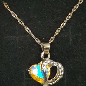 Heart Pendant Necklace – 925 Sterling Chain – Aurora Glass Crystal (NWOT)