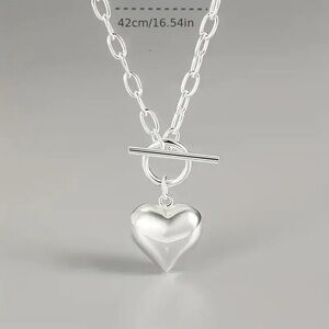 #SilverTone #HeartShaped #PendantNecklace #ClavicleChain #OTBuckleDesign #ToggleChain #Necklace