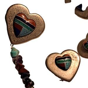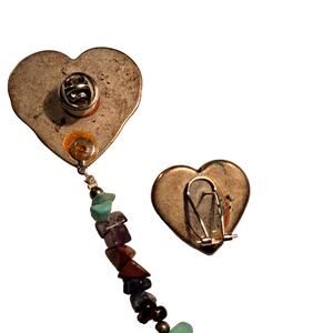 Handmade Heart Pierced Clip Back Earrings + Chip Bead Sweater Clip Chain Set Southwestern.