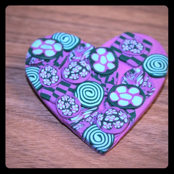 Vintage Handmade Clay Heart Pin