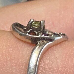 Heart Ring Size 7.5 Garnet Amethyst Spinel Tourmaline Sterling Silver 925 Women