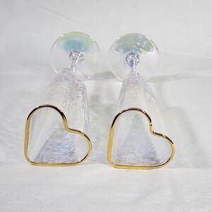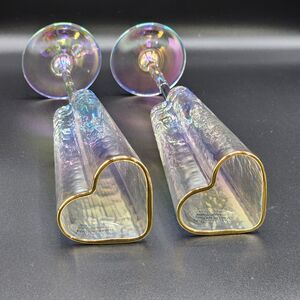 Heart Shape Gold Rimmed Iridescent Champagne Flute Glass Drinkware 5oz Set Of 2