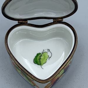 Heart Shape Limoges France Peint Main Hinged Trinket Box