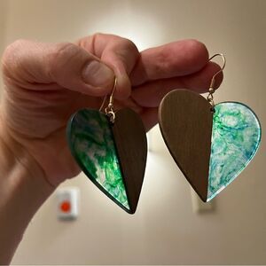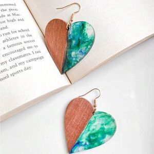 Heart Shape Vintage Style Walnut Wood & Resin Mismatched Earrings