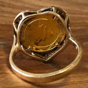 Total weight of 14K gold ring setting, diamonds & coin is 4.5 grams