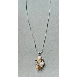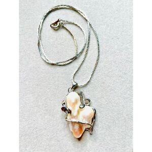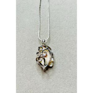 Heart Shaped Blister Pearl Pendant 18K Plated Setting Silver Tone Necklace