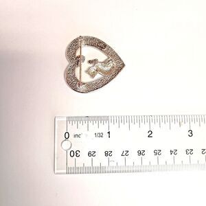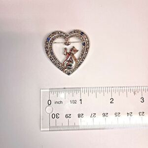 Heart Shaped Brooch Cat With Heart Dangle Silvertone Pave Metal Blue Crystals