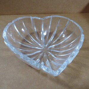 Heart Shaped Candy Trinket Dish Ribboned Glass