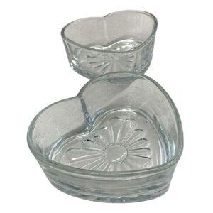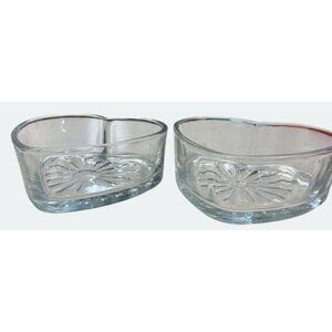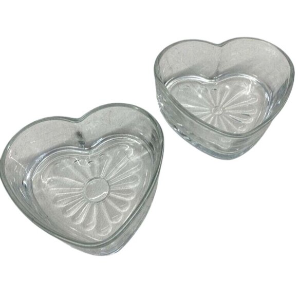 Enhance your dining or decor with these elegant heart-shaped glass bowls. Perfectly clear with intricate floral designs, they add charm to any setting.