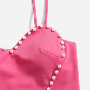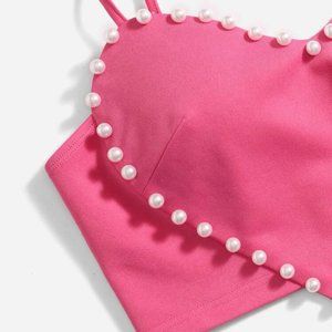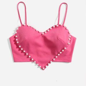 Heart Shaped Crop Top Pearl detail Pink