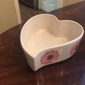 Made for FTD~Porcelain Heart Shaped Decorative Dish~Pink Painted Flowers Makes A Beautiful Valentine Candy dish or Flower Vessel