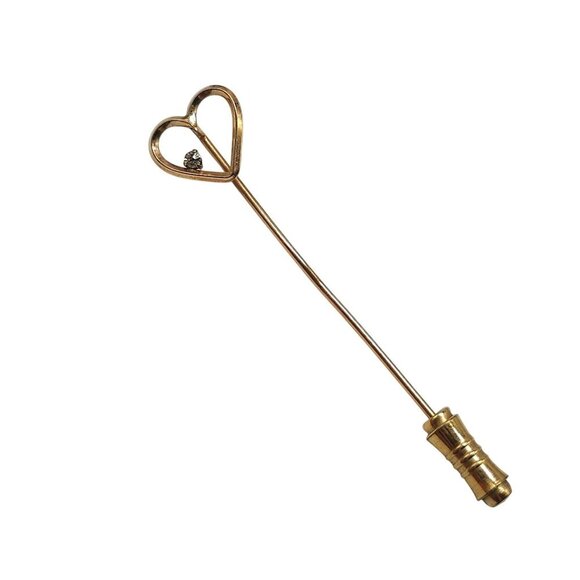 Heart Shaped Gold Tone Stick Pin Brooch With Clear Rhinestone Accent