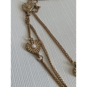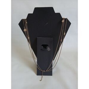 Heart Shaped Gold Toned Metal Charms Multi-Strand Chain Statement Style Necklace