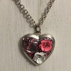 Heart Shaped Locket Flowers Pink Dangle Earrings