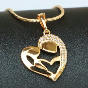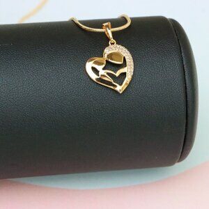 "Heart Shaped Mother & Child Pendant in Rose Gold with CZ Accents, XPPT1840