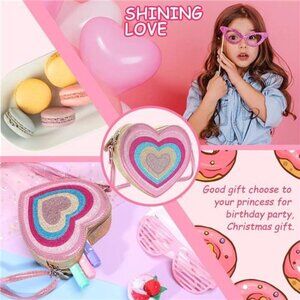 Heart Shaped Purse Pink Purse for Girls Kids Sparkly Pink with Shoulder Strap