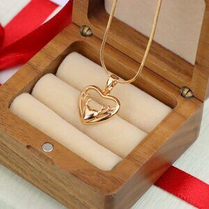 A charming fusion of nature and love, this rose gold pendant features an artistic heart design with delicate antler detailing, symbolizing strength and affection.