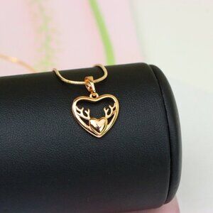 A charming fusion of nature and love, this rose gold pendant features an artistic heart design with delicate antler detailing, symbolizing strength and affection.