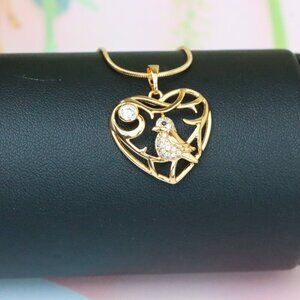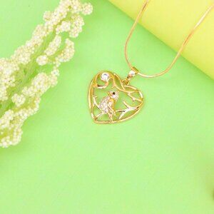 "Heart Shaped Rose Gold Pendant with Bird and Branch Design, XPPT1297
