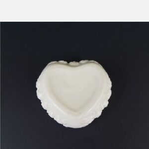 Heart Shaped Small Porcelain Trinket Box Ivory w/ Gold Trim Embossed Roses