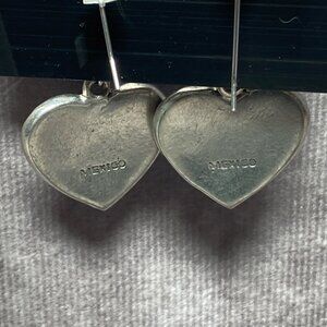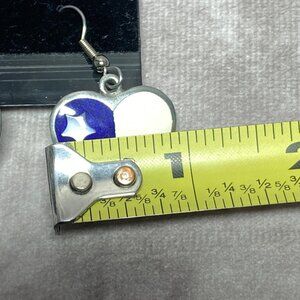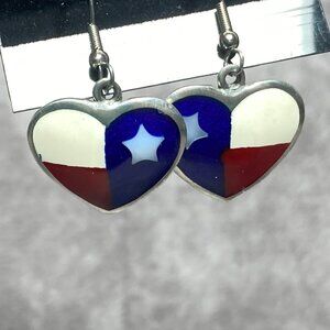 Heart Shaped Star Earrings With Texas Flag Design & Silver Tone Hooks