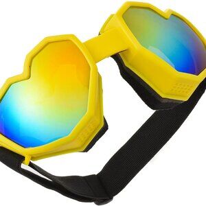 Features: Bold heart-shaped frames that are stylish and eye-catching, ideal for parties, cosplay, or daily wear. Designed with UV-protective lenses that block harmful rays and restore natural colors, making them as practical as they are cute. Soft sponges on the frame edges ensure a comfortable fit, and the adjustable elastic strap fits all head sizes. Perfect for outdoor fun, festivals, or just making a statement.