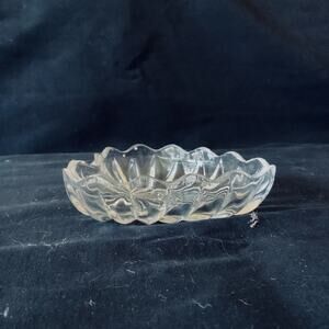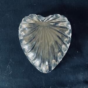 Cute cut glass heart shaped trinket dish in good preowned condition. No chips or cracks.
