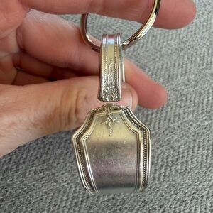 Handmade keychain made by me from vintage silver plated serving spoon! All my pieces are made from silverware found at estate sales, since this is made from a vintage spoon there may be imperfections in the metal.