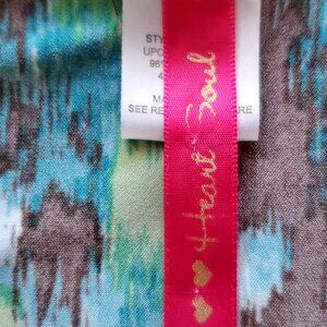 Heart Soul Blouse Top Women's Large Blue Green Ruffle Knit Stretch Cap Sleeves