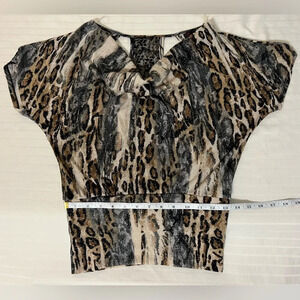 Heart Soul Leopard Printed Sequin Cowl-neck Top Short Sleeve Sweater Small. NWT