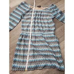Heart Soul Multi Colored Geometric Design 3/4 Sleeved Mini Dress | Size Medium