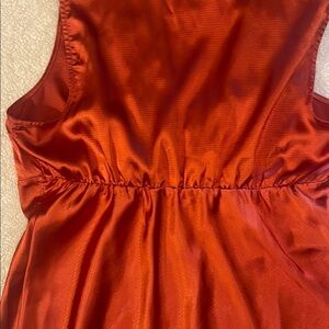 This vibrant orange blouse from Heart Soul features elegant ruffled detailing along the neckline and front, creating a sophisticated look. The blouse is designed with a fitted silhouette and crafted from a fabric with a subtle sheen, adding a touch of elegance to any outfit.150