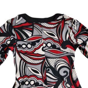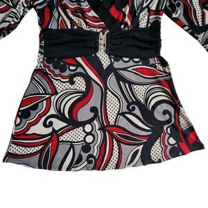 Heart Soul Red Black White Multicolor Swirl Print Faux Wrap 3/4 Sleeve Top Sz M