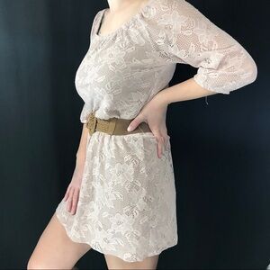 Heart Soul brand Tan Belted Short Lace Overlay Casual Dress.