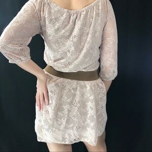 Heart Soul Tan Belted Short Lace Dress Size Med