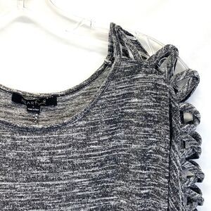 Heart Soul Top Womens Size Small Gray Stretch Cut Out 3/4 Sleeves