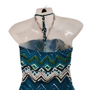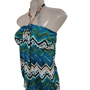 Heart Soul Tropical Chevron Print Halter Brami Top Beaded Strap Boho Size Large