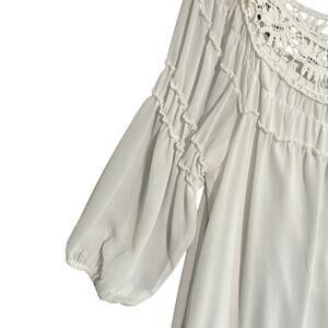 Heart Soul White Mini Dress Womens Medium 3/4 Length Sleeve Boho Hippie Eyelet