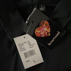 Heart Soul Women’s Black Button Down Cotton Blend Stretchy Shirt Size Large